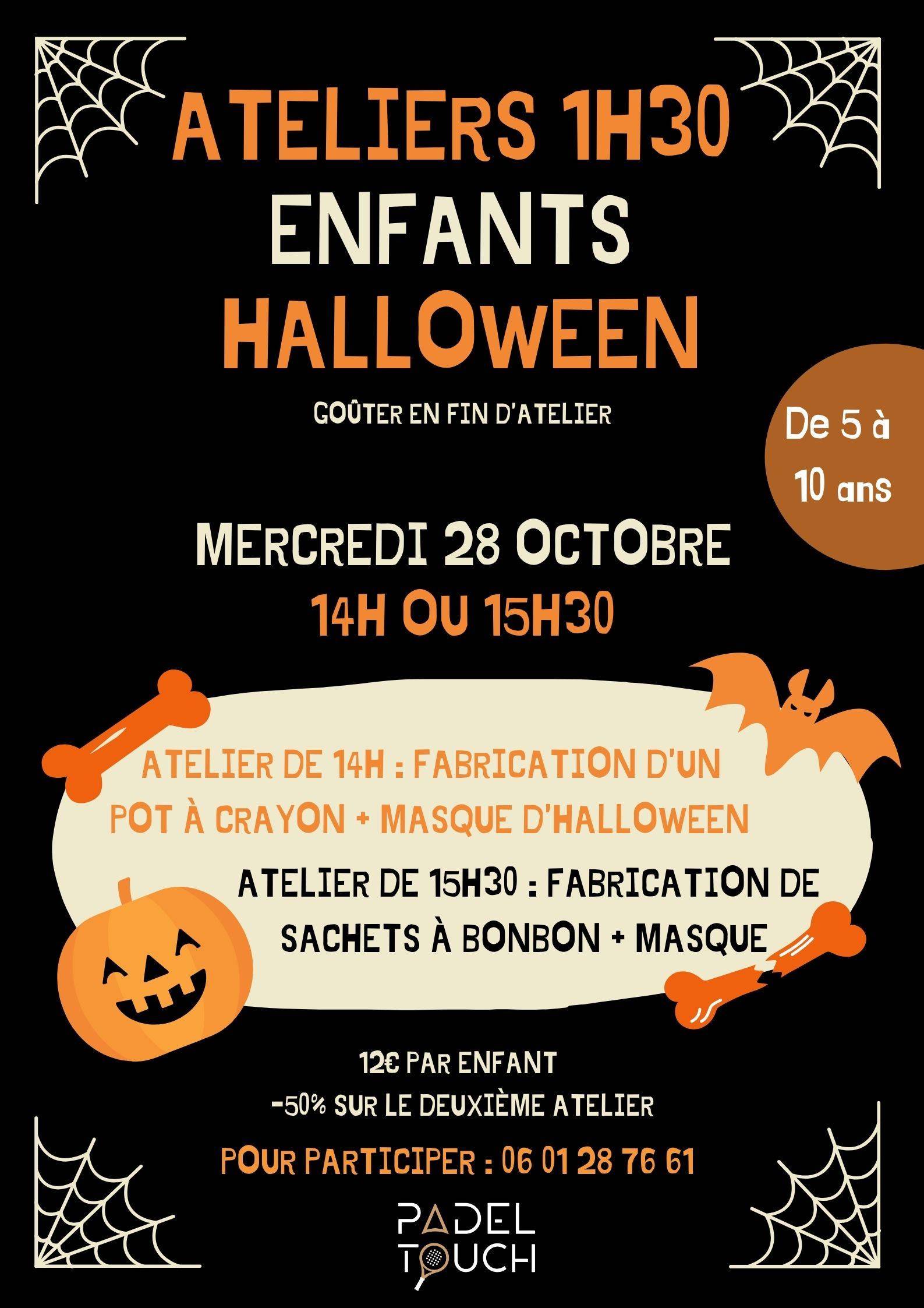 Mercredi 28 Octobre, nous vous proposons des ateliers créatifs d'1H30 sur le thème d'Halloween, encadrés par Juliette (diplômée de l'éducation nationale), pour vos enfants de 5 à 10 ans,